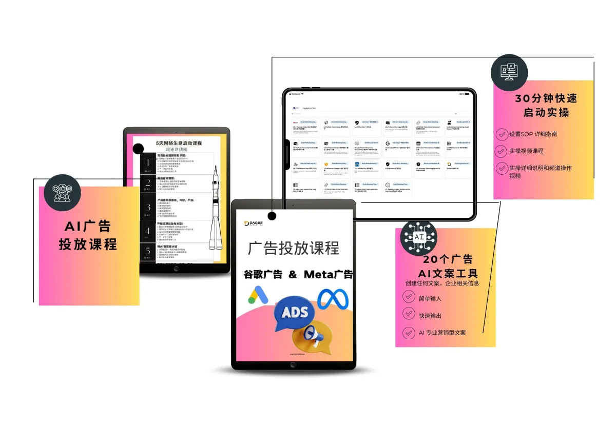 这是一套面向企业主、创业者及网络营销从业者的实战课程,将带领学员在7天内掌握AI广告投放、自动化运营及智能营销的核心技能。每天仅需30分钟,让您快速掌握AI时代的获客武器。
