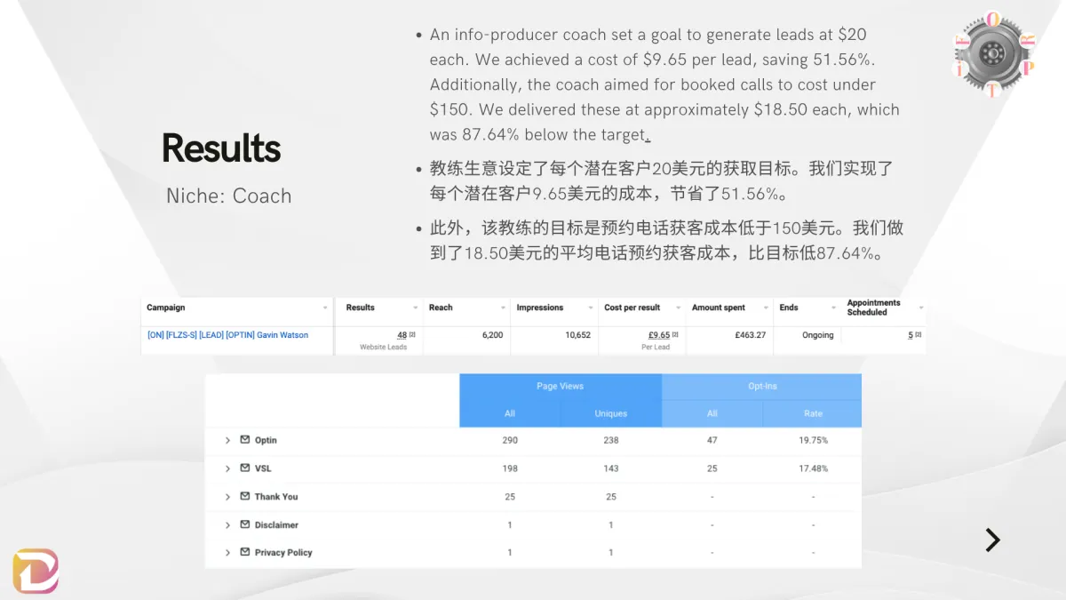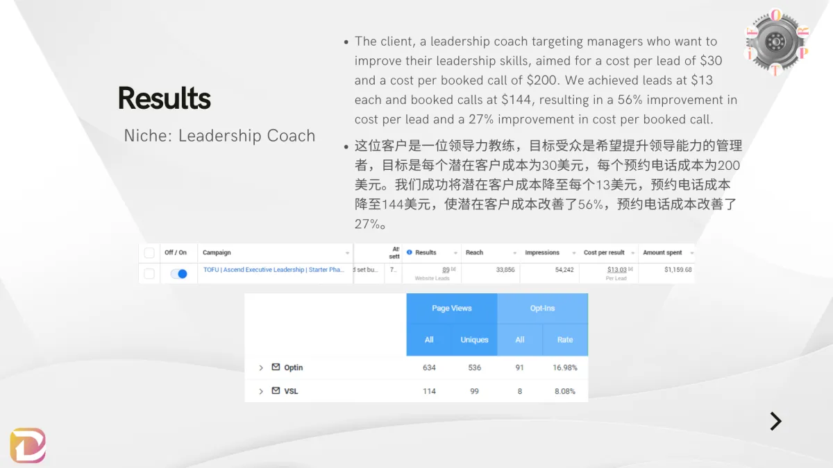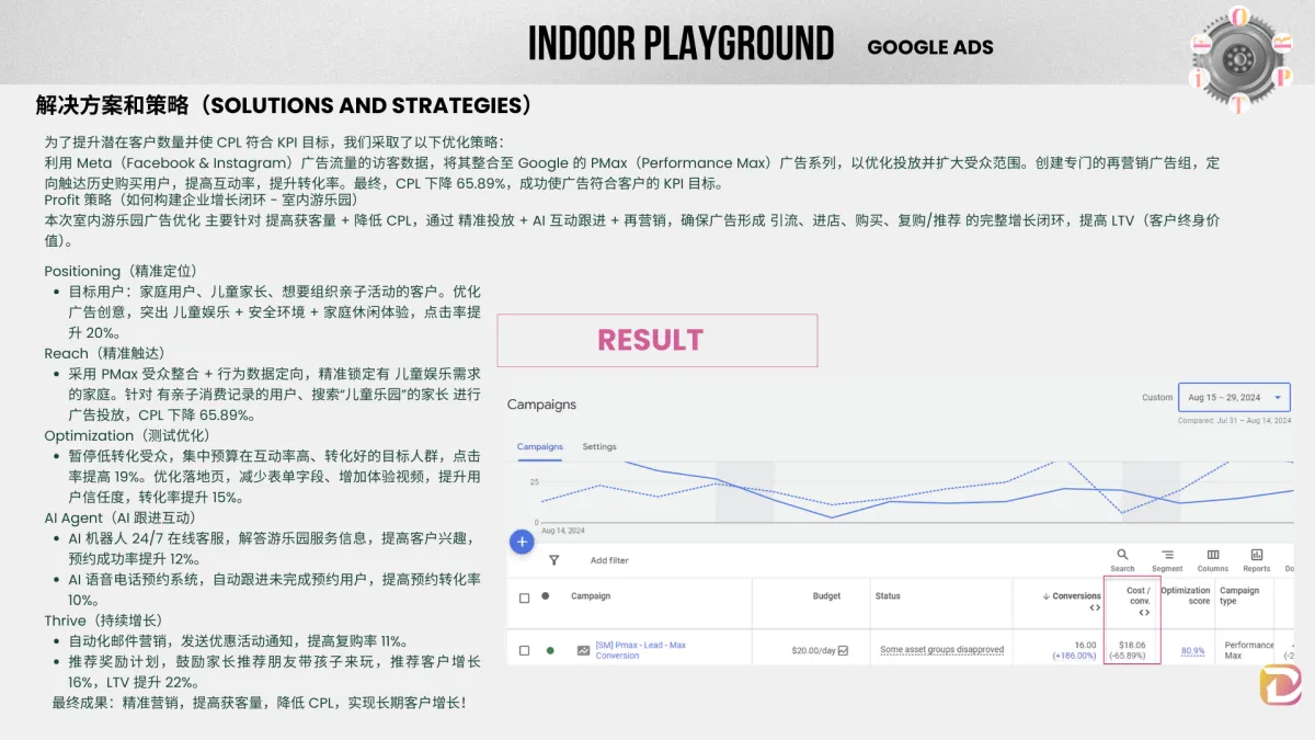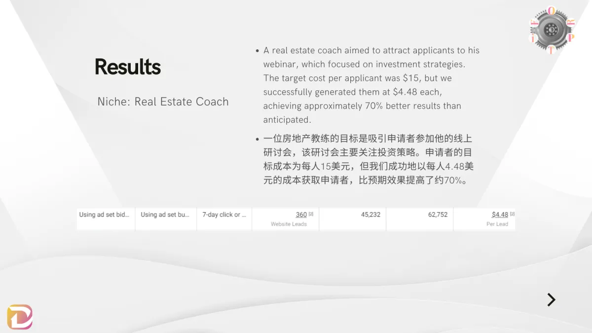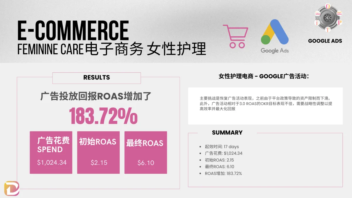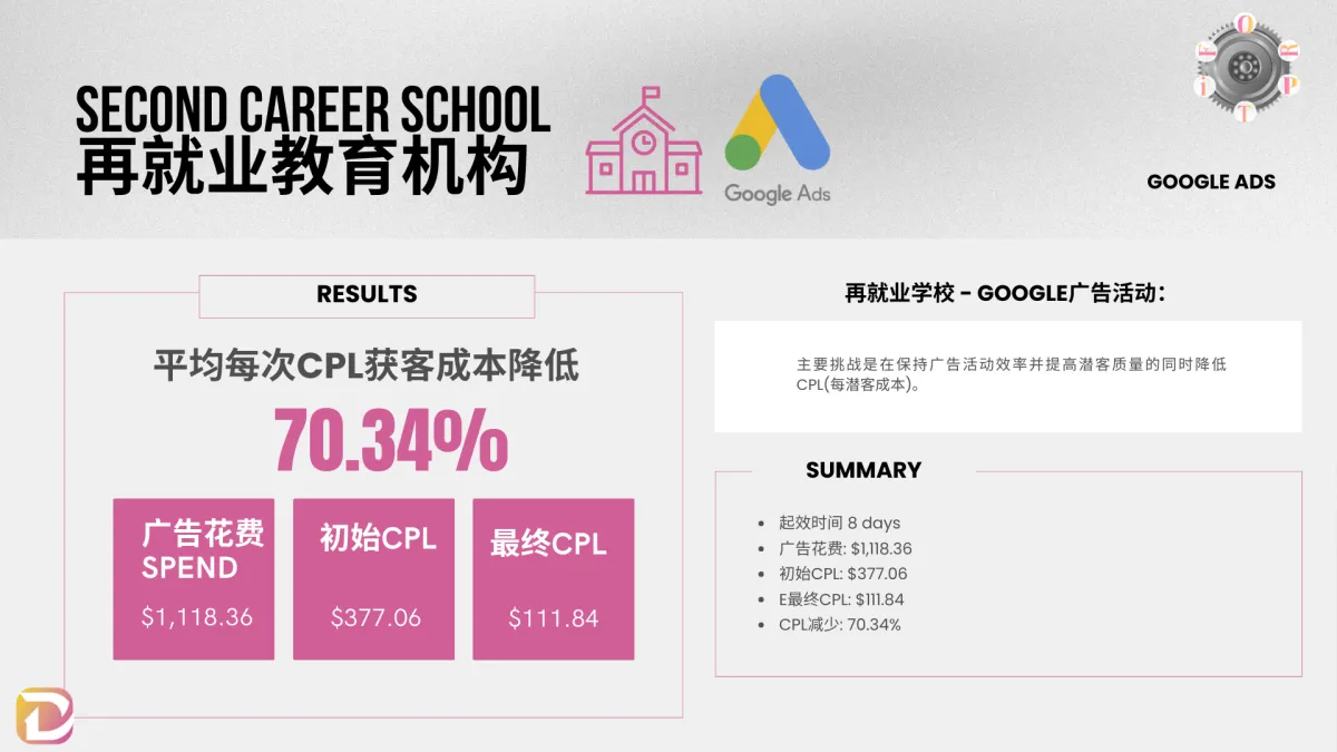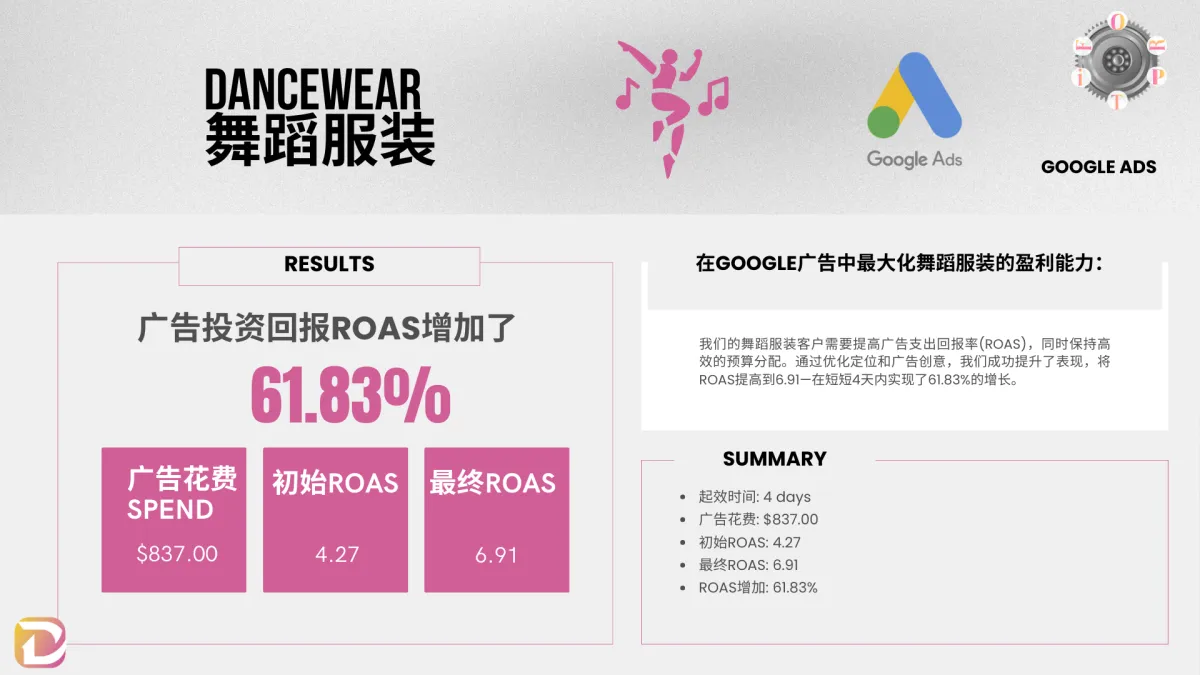 "Daojie 谷歌视频广告内容和课程帮助我们快速搭建好引流拼盘,投资回报率达数十倍的显著成效"