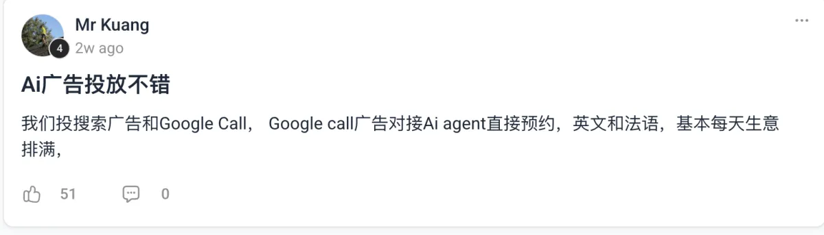 "Daojie AI Ads帮助我实现咨询和电话量提升50%,同时节省大量的社交媒体营销时间。"